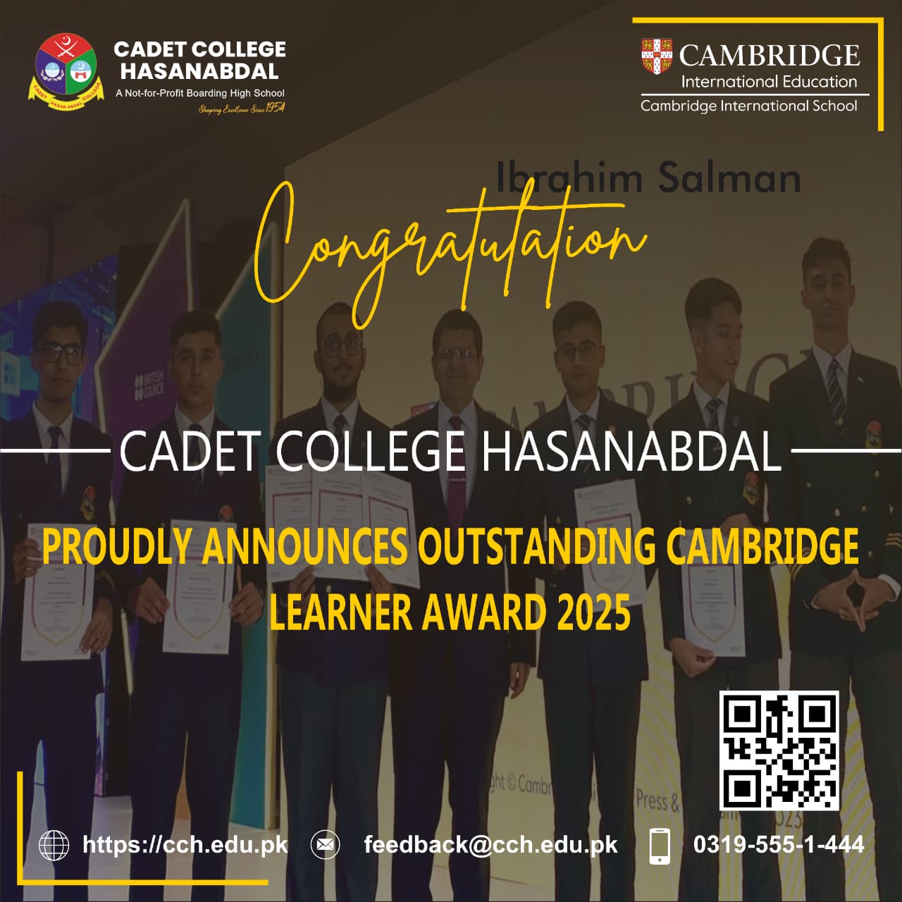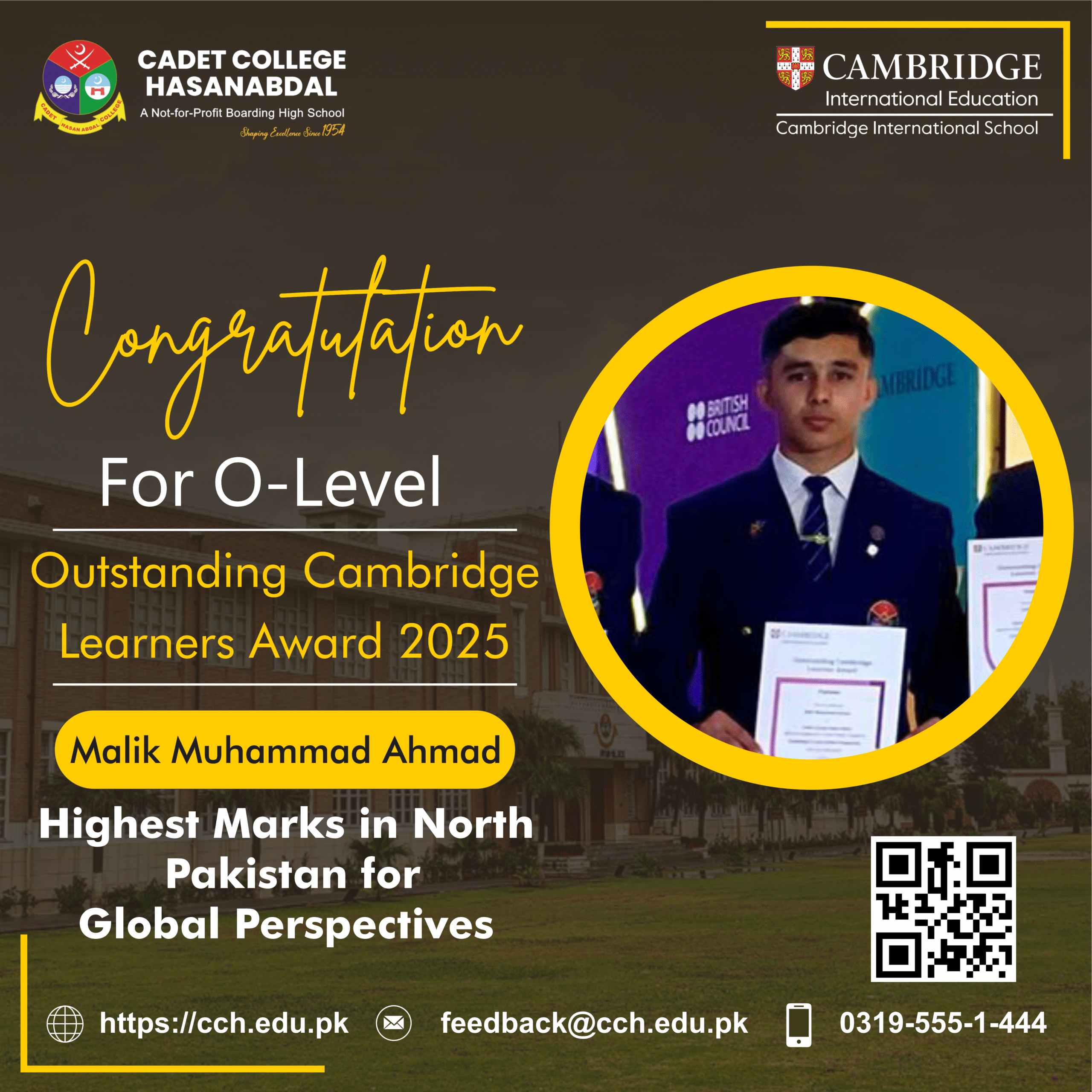 Cadet College Hasanabdal is proud to own a series of Position Holders in the Cambridge O/A Level Exams. The following are some of the pictures of Position Holders of the last year.