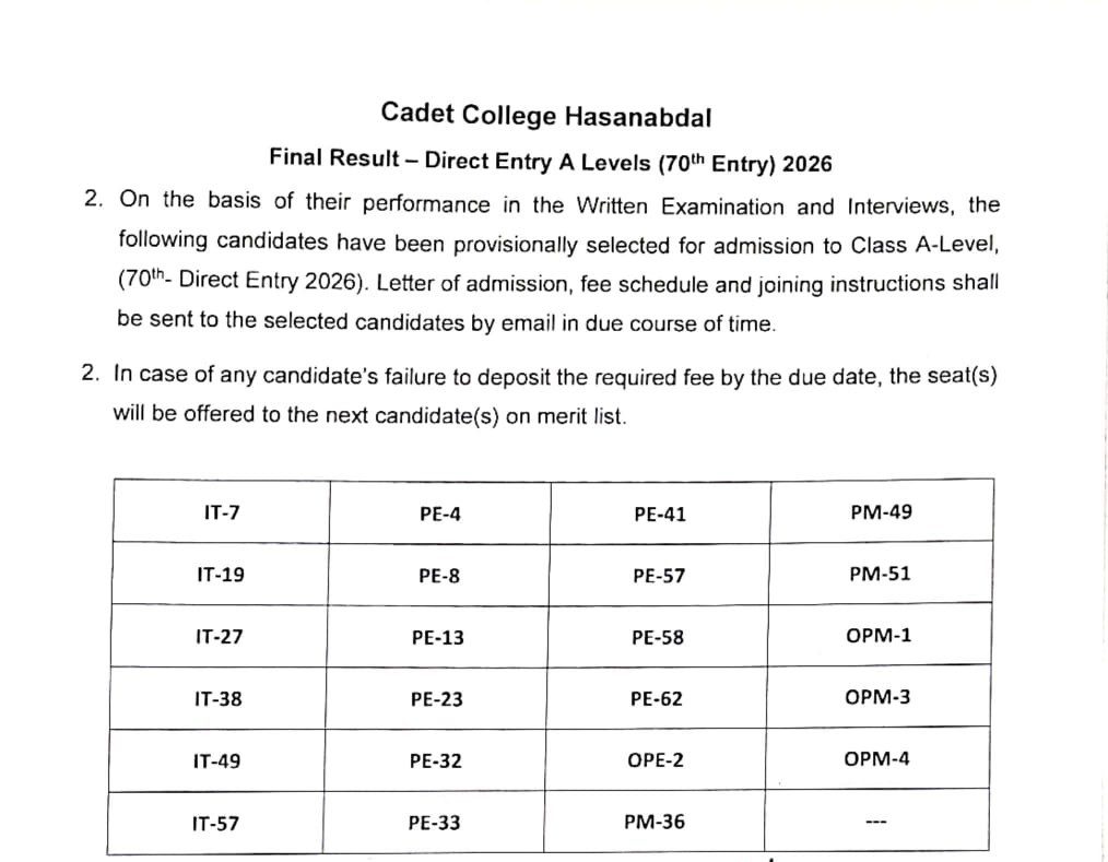 The result of Entrance Test for ππ₯ππ¬π¬ A-πππ―ππ₯ ππππ (π0th ππ§ππ«π²) has been announced.
